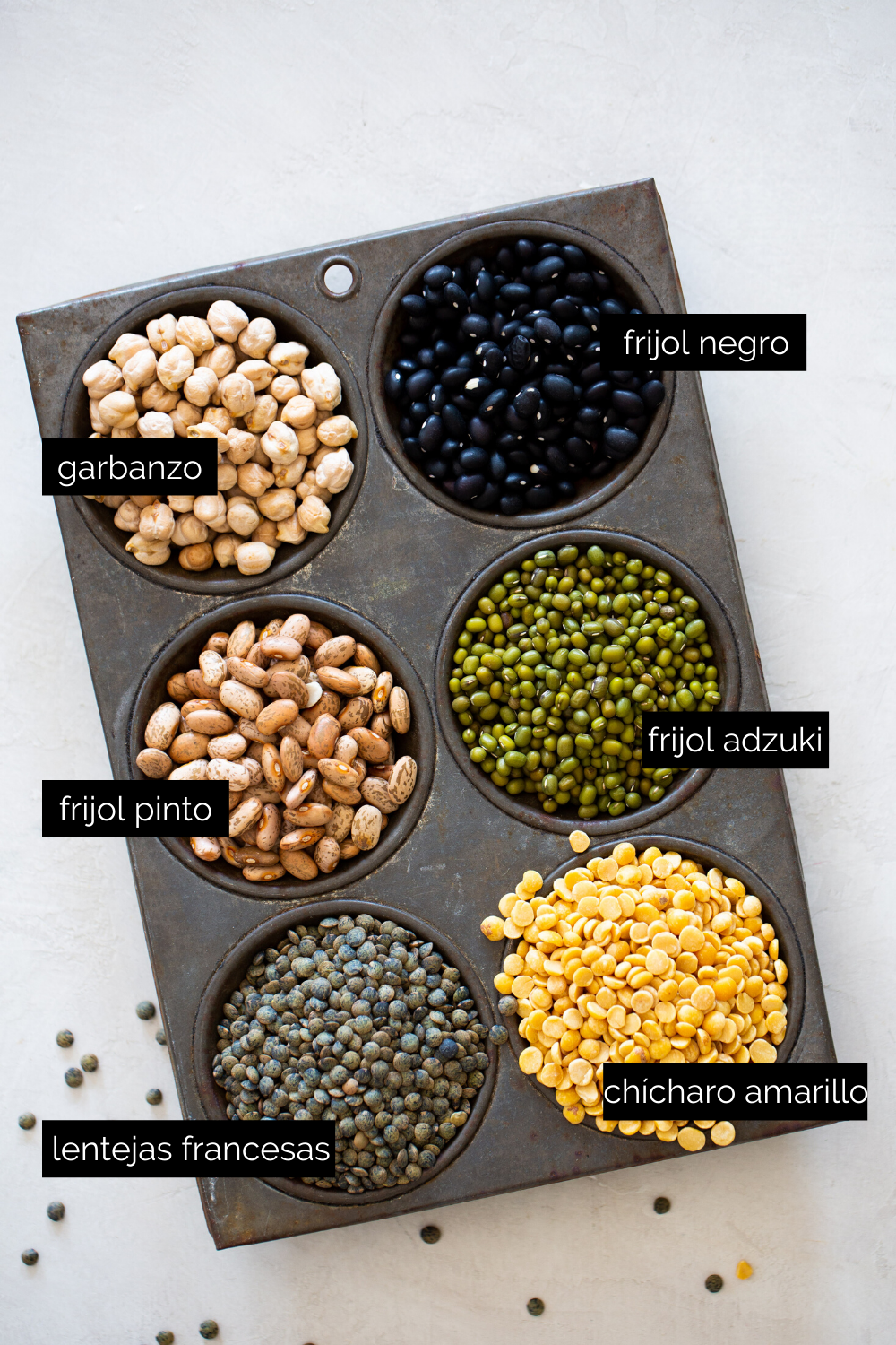 - Cambia las legumbres: frijol rojo, alubias, lentejas o garbanzos dobles funcionan muy bien.