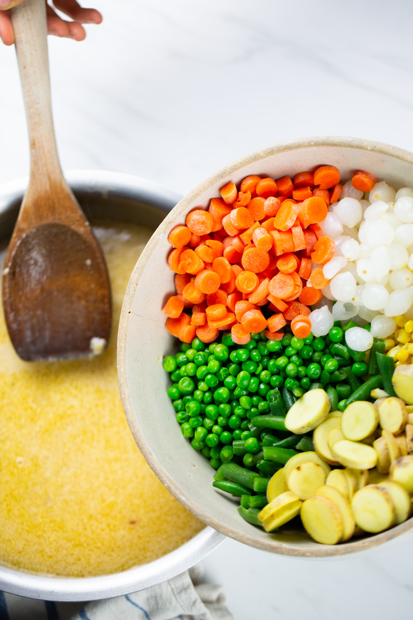Esta receta de sopa de verduras pot-pie está inspirada en la clásica pot-pie soup; mi versión es vegana y sin gluten. Estoy segura de que te va a encantar; no hay nada como una sopa cremosa, perfecta y llena de verduras para sentirnos contentos.