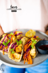 Estos tacos los puedes acompañar con unos frijoles refritos a un lado, con arroz integral o quinoa. Prepara un agua de jamaica u horchata para tomar con estos tacos. Si necesitas más sabor puedes servirlos con salsa verde o con cebollas moradas encurtidas.