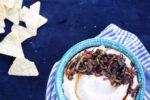 Sirve el hummus en un tazón y coloca encima los chiles con cebolla.