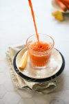 Coloca un colador de malla fina o una bolsa para hacer leche de nueces sobre un tazón grande o una jarra. Vierte la mezcla de zanahoria a través del colador. Usa una cuchara o espátula para presionar la pulpa y extraer tanto jugo como sea posible.